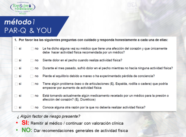 Este cuestionario fue diseñado para ser contestado por cualquier persona y permitirle detectar de manera fácil si necesita una evaluación inobjetable por el médico antes del inicio de la actividad física, ejercicio o deporte.